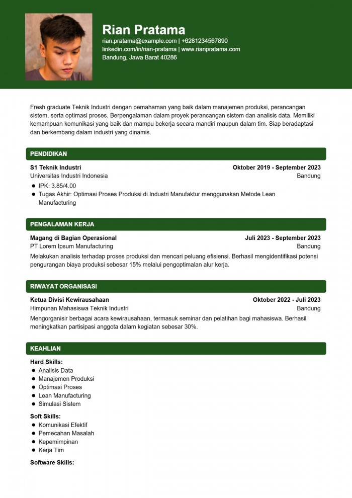 Contoh CV S1 Fresh Graduate Teknik Industri.