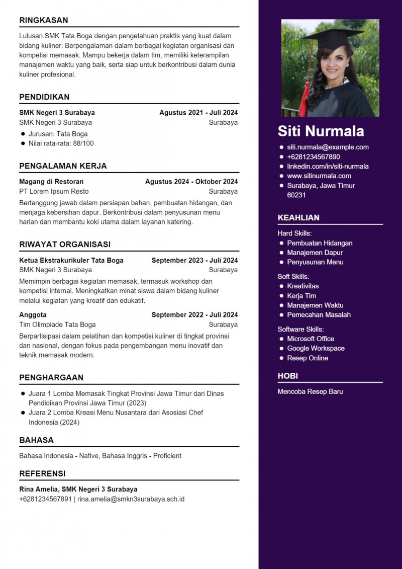 10 Contoh CV Tata Boga Fresh Graduate & Berpengalaman.