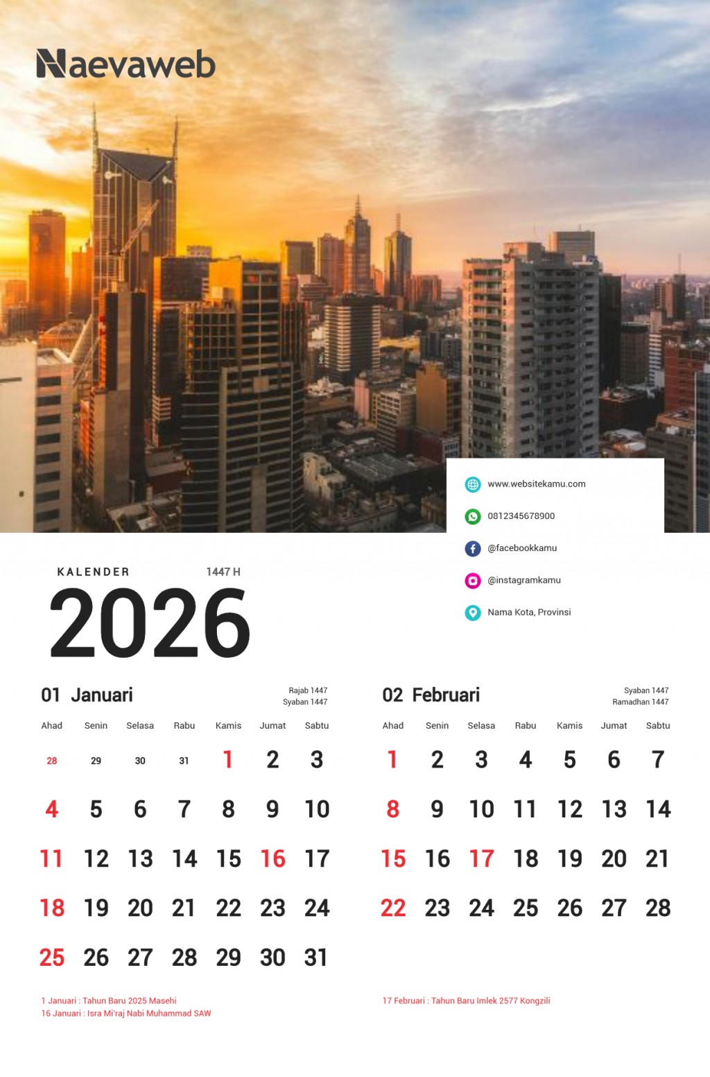 Buat kalender dinding 2026 Anda sendiri dengan mudah dan gratis di Naevaweb!