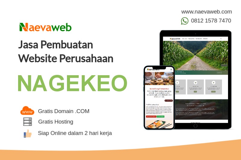 Naevaweb memberikan layanan jasa pembuatan website di Kabupaten Nagekeo meliputi: web toko online, situs butik online, web perusahaan, web universitas, web jasa travel, website persewaan mobil dan motor, web resto, situs makanan khas, situs lembaga pemerintah, web perhimpunan, website jual beli properti, web barber shop, situs spa, web sablon, website berita, web jasa legal, situs dealer motor, web mebel, web losmen, web portofolio, website penyalur tki, web jasa service elektronik, web service motor, web toko bahan bangunan, website perlengkapan rumah, website toko perlengkapan kantor, web sablon kaos, web pet store, situs masjid, website kosmetik dan website jasa pengiriman