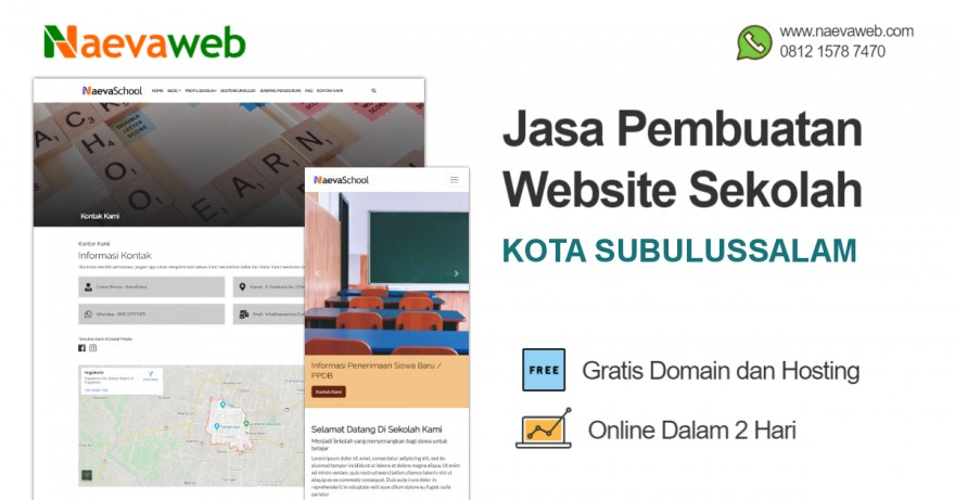 Layanan Jasa Bikin Web Sekolah perusahaan kami meliputi mengisi konten ke dalam website sekolah, melakukan maintenance website sekolah, melaksanakan setup hosting website sekolah, mendaftarkan domain sekolah dan upload foto gallery sekolah. Kebutuhan website sekolah di Kota Subulussalam terus meningkat sejalan dengan peningkatan jumlah sekolah di kota dengan Anggaran Pendapatan dan Belanja wilayah Rp 589,3 miliar tersebut. Jumlah sekolah SD, SMP, SMA dan SMK di Kota Subulussalam merupakan 158 sekolah, terbagi menjadi 115 sekolah negeri dan 43 sekolah swasta.