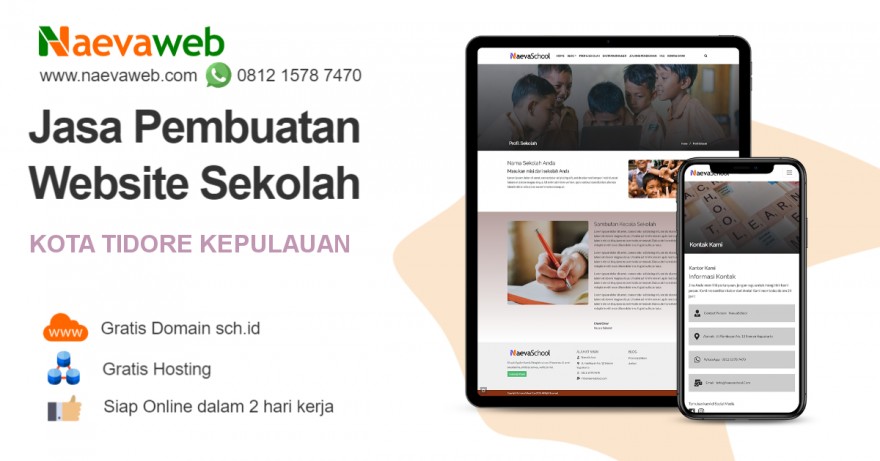 Hubungi usaha kami, Naevaweb sekarang juga teruntuk memperoleh layanan Jasa Pembuatan Website Sekolah yang kompetitif dan terdekat di Kota Tidore Kepulauan. Layanan Jasa Pembuatan Website Sekolah perusahaan kami meliputi mendaftarkan domain sekolah, mengisi konten ke dalam website sekolah, upload foto gallery sekolah, melakukan setup hosting website sekolah dan mewujudkan website sekolah
