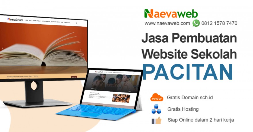 Info spesialis Jasa Pembuatan Website Sekolah yang bagus hasilnya di Kabupaten Pacitan. Terdapat 489 sekolah negeri dan 228 sekolah swasta, menjadikan total jumlah sekolah di Kabupaten Pacitan merupakan 717 sekolah teruntuk jenjang SD, SMP, SMA dan SMK sederajat. Perusahaan kami yang bagus dan terdekat memberikan layanan kepada SD, SMA, PAUD / TK, SMP dan SMK yang membutuhkan Jasa Pembuatan Website Sekolah di wilayah Kabupaten Pacitan.