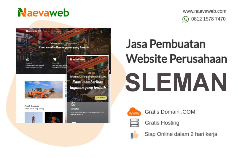 Perlu jasa pembuatan website yang bagus hasilnya di Sleman ? Teruntuk layanan jasa pembuatan website dengan harga ekonomis dan profesional di Sleman dan sekitarnya, hubungi Naevaweb di 0812 1578 7470.