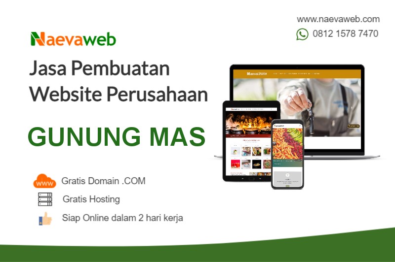 Anda membutuhkan spesialis jasa pembuatan website yang paling termurah dan bisa dipercaya di Gunung Mas? Layanan jasa pembuatan website Naevaweb di Gunung Mas meliputi melakukan pemeliharaan website, upload foto gallery, mendaftarkan domain, melahirkan website dan mengisi konten ke dalam website.